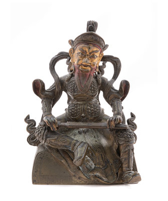 A Sino-Tibetan Parcel-Gilt Bronze Figure of Virudhaka