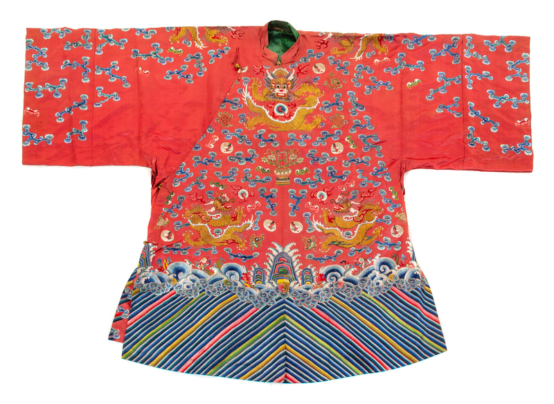 清十九世紀 紅地彩繡云龙海水江崖龙袍