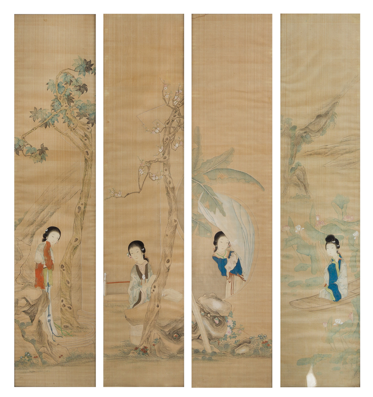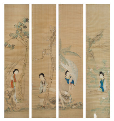 A Set of Four Ink and Color on Silk Paintings