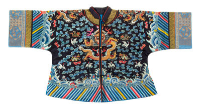 A Blue Ground Embroidered Silk Dragon Robe