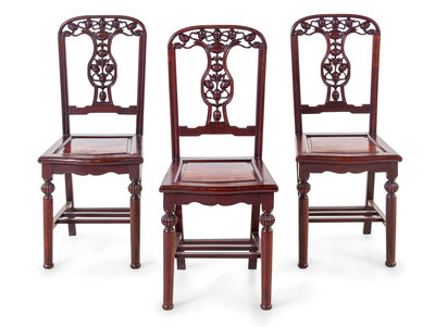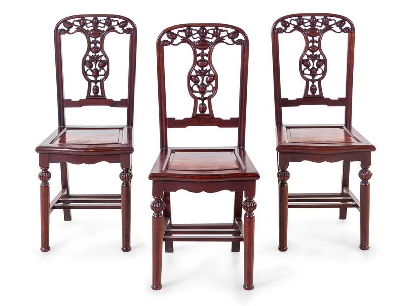 A Set of Chinese Export Hardwood Round Table and Four Chairs