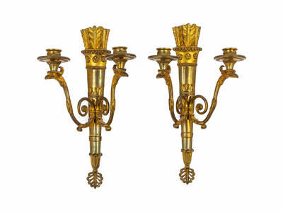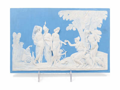 comprising a painted plaque in the style of jasperware and a pair of quiver form sconces.