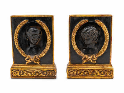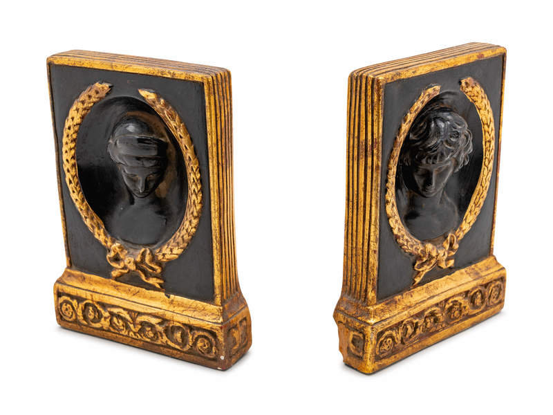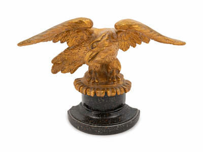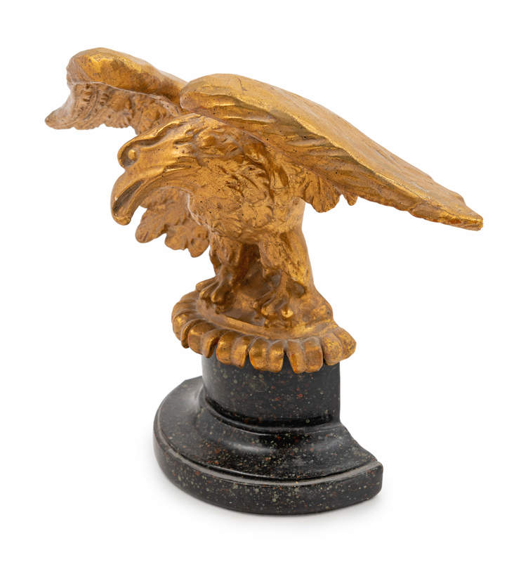 comprising a gilt decorated eagle and a pair of Classical style bookends.