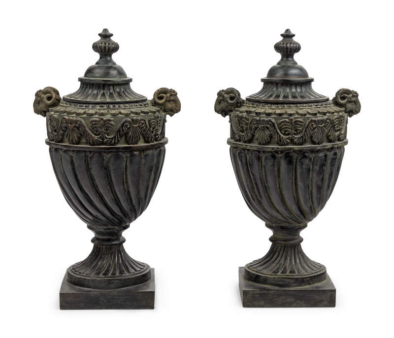 A Pair of Neoclassical Style Resin Urns