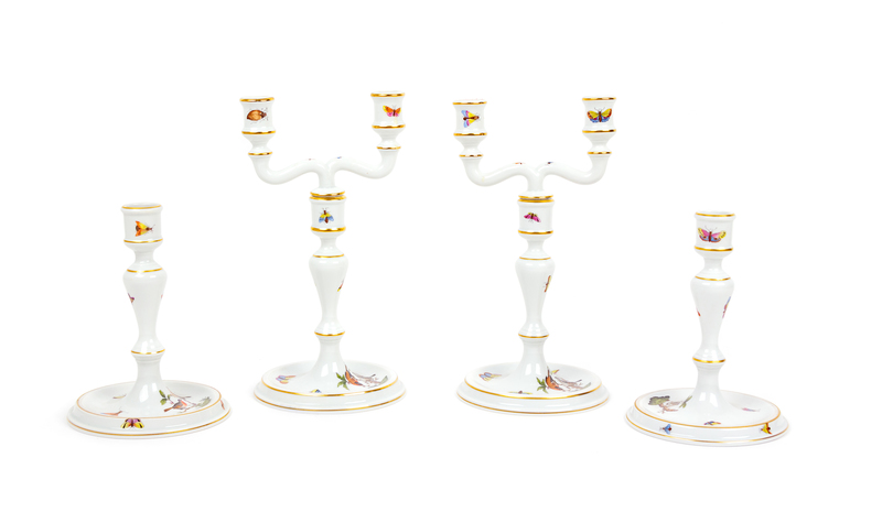 Two Pairs of Herend Porcelain Candlesticks