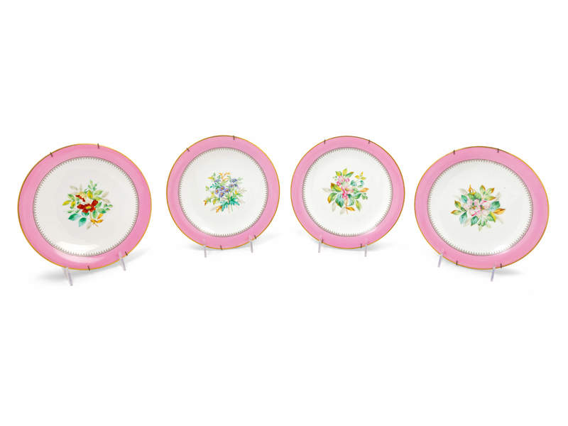 A Set of Four French Painted Porcelain Plates