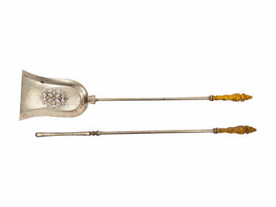 together with two fireplace tools.