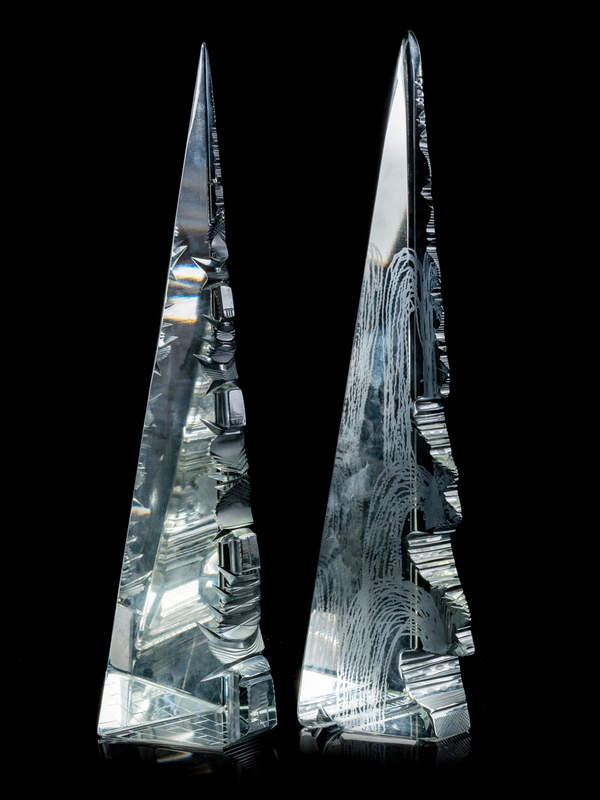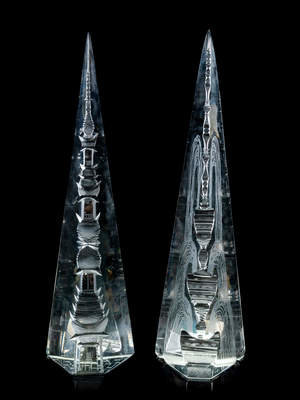 A Pair of Cut Glass Obelisks