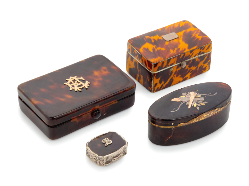 A Collection of Four Tortoise Shell Veneered Snuff Boxes