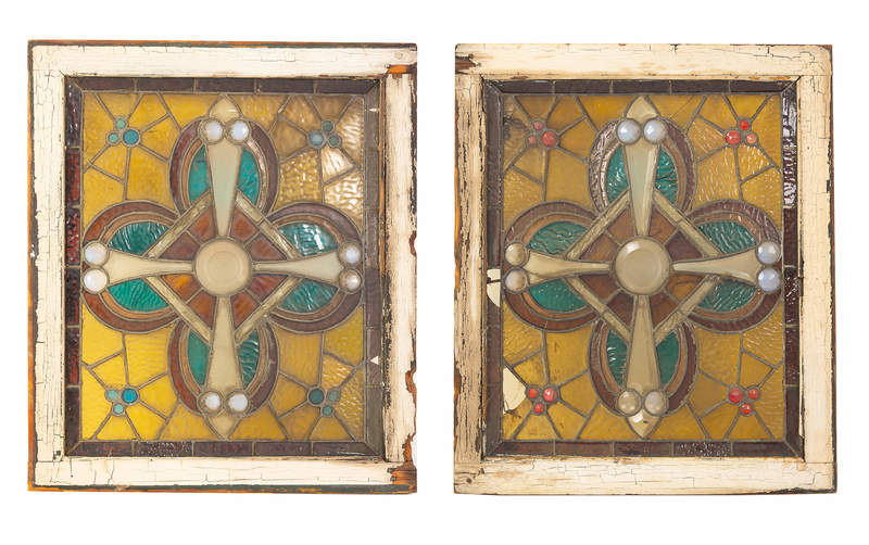 A Set of Three Victorian "Jeweled" Leaded Glass Windows