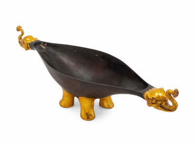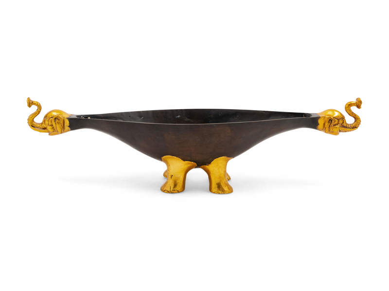 comprising a glass candlestick, an elephant form center bowl, a gilt metal stand and a decorative basket.