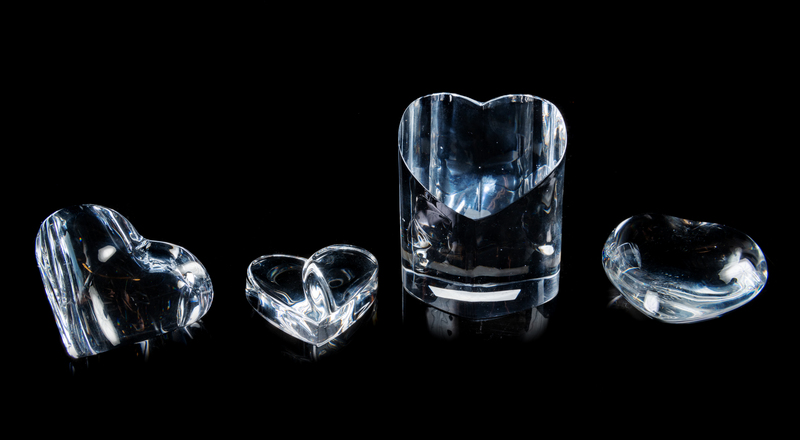 A Group of Four Heart-Form Glass Table Articles