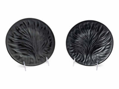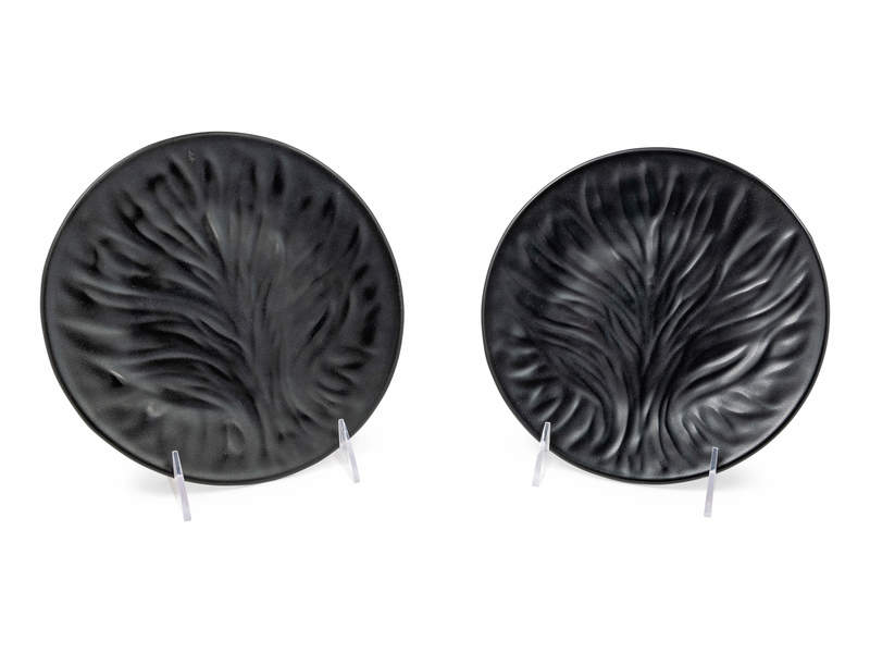 A Set of Twelve Lalique Colored and Frosted Glass Salad Plates