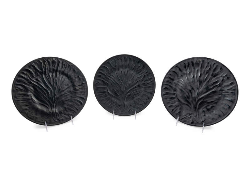 A Group of Three Lalique Colored and Frosted Glass Chargers