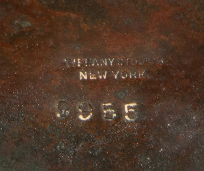 base stamped TIFFANY STUDIOS NY 9955 to underside, shade etched L.C.T to inner rim