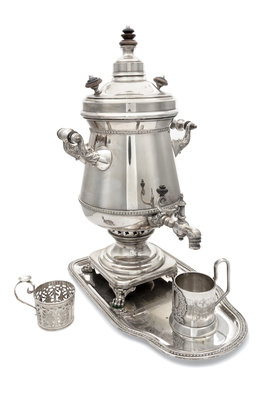 A Russian Silver-Plate Samovar and Tray