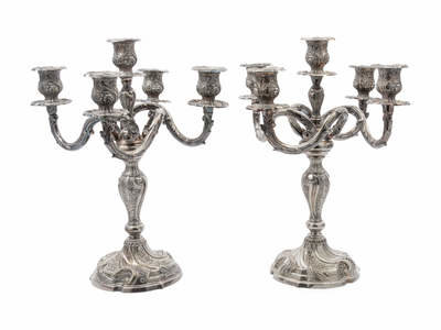 A Pair of Mexican Silver-plate Five Light Candelabra