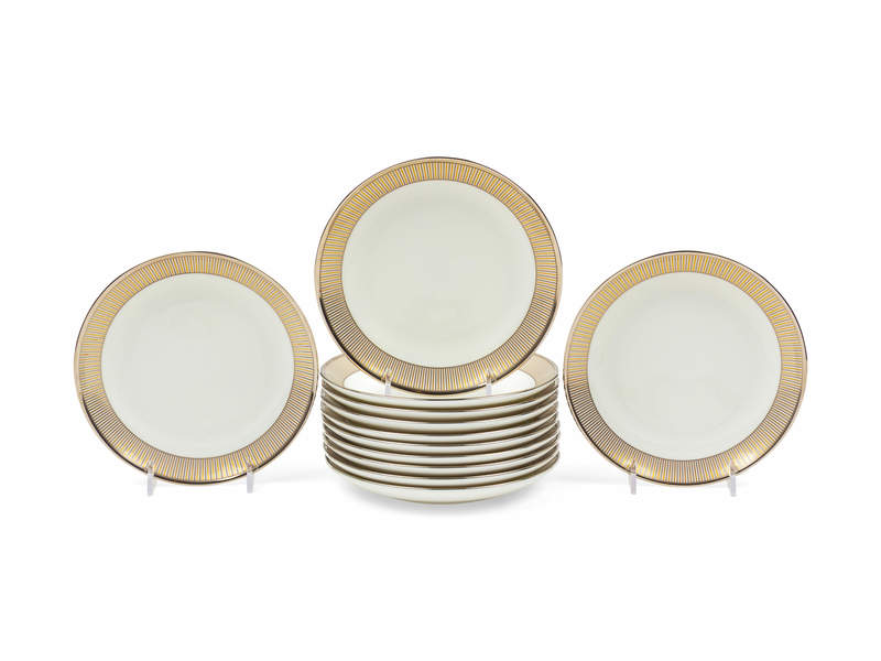 A Set of Twelve Tiffany & Co Porcelain and Palladium Decorated Bread Plates