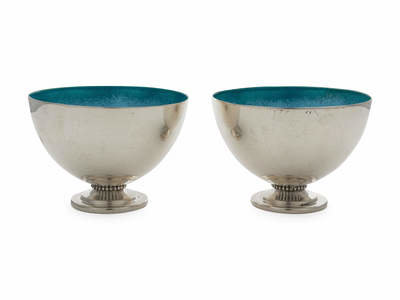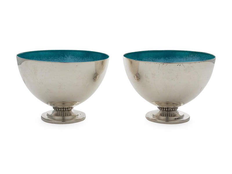 A Pair of American Silver Enameled Revere Bowls