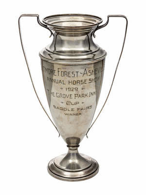 with engraved inscription Biltmore Forest-Asheville/ Annual Horse Show/ 1929/ The Grove Park Inn/ Cup/ Saddle Pairs/ Winner, weighted.