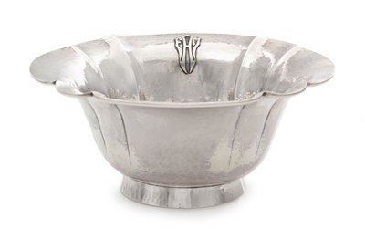Art Silver Shop, Chicago, having a scalloped rim and a spot-hammered finish, the border with a