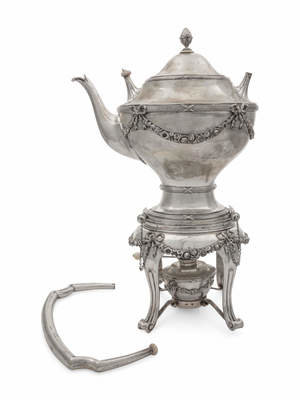 An Austrian Silver Tea Kettle on Lamp Stand