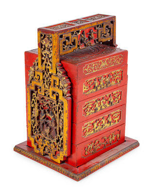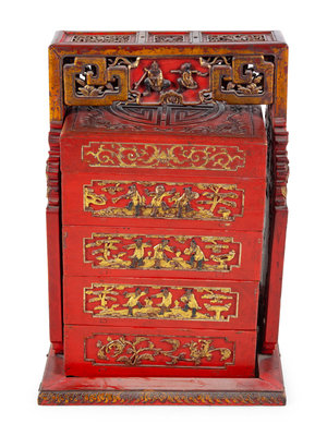 A Chinese Export Gilt and Lacquered Locking Cabinet
