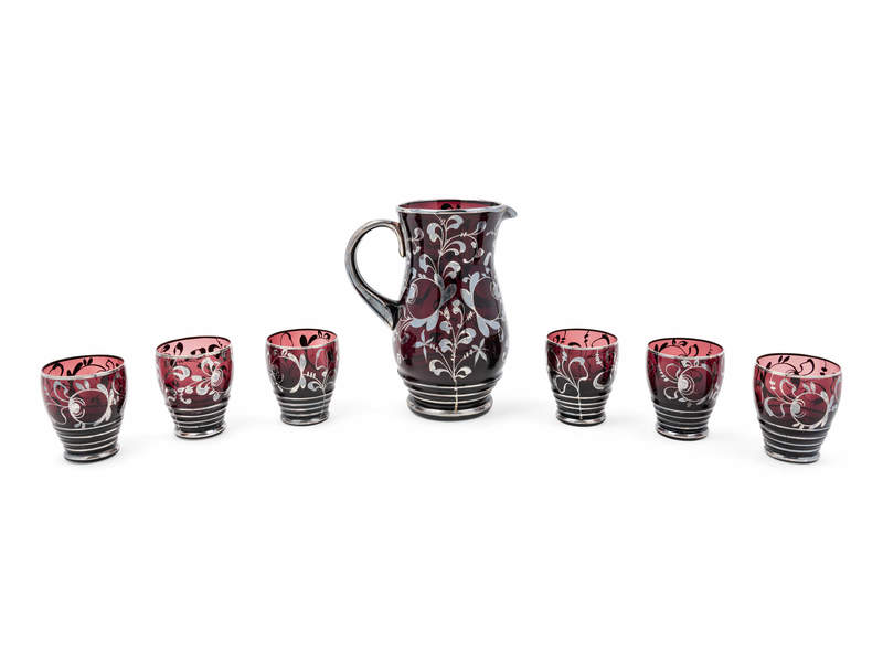 comprising a pitcher and six glasses.
