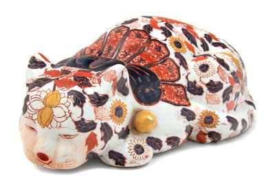 depicting a cat with Imari decoration.