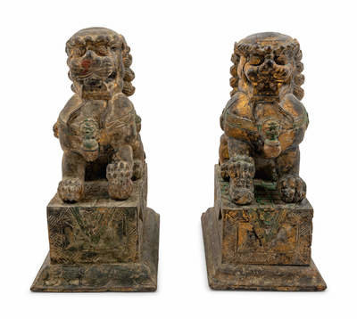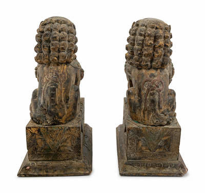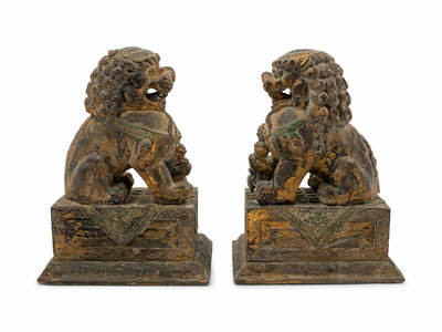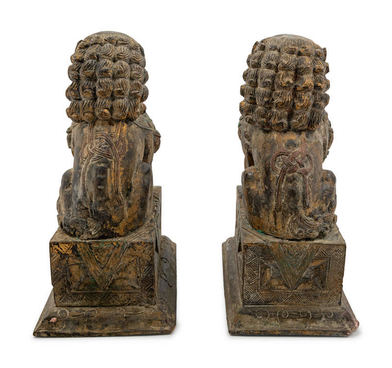 A Pair of Carved Wood Fu Lions