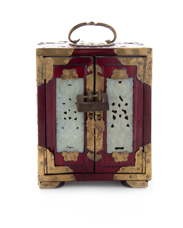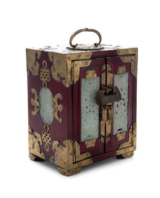 A Chinese Hardstone Mounted Gilt Metal Box