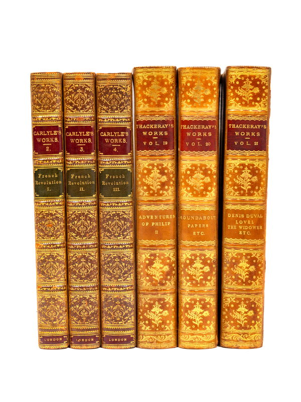 THACKERAY, William Makepeace (1811-1863). Works. London: Smith, Elder, & Co., 1911. 7 volumes (of 26, comprising 3-4, 18-22), 8vo. Frontispiece to each volume, numerous engraved plates and in-text illustrations. Modern tree calf gilt, top edge gilt, stamp-signed by Riviere & Son (some light wear to extremities). “Centenary Biographical Edition.”