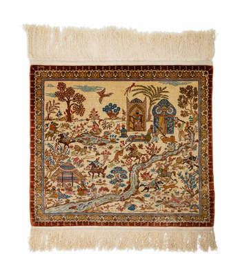 A Persian Silk Pictorial Rug