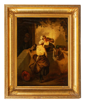 Two Ladies Whispering Over a Wall