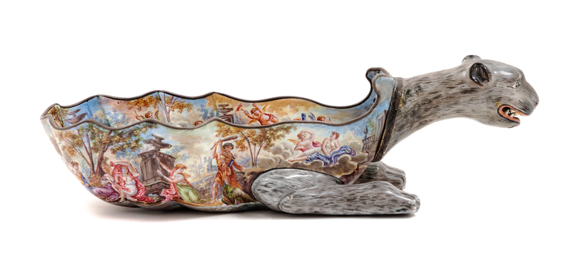 A Viennese Enameled Handled Cup in the Form of a Mythical Beast