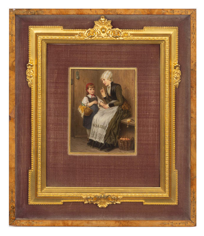 depicting a mother and child, set within a giltwood frame further set in an additional frame.