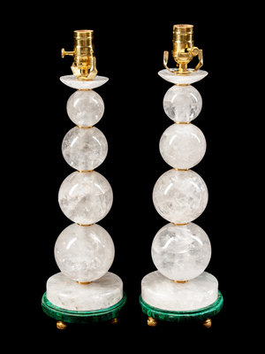 A Pair of Rock Crystal and Malachite Veneered Lamps