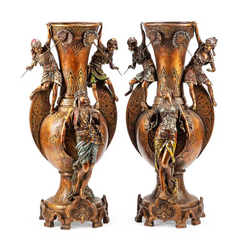 patinated metal with polychrome decoration