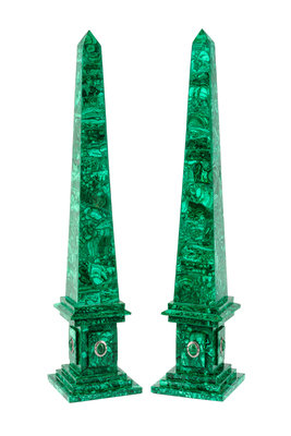 A Pair of Large Russian Malachite Veneered Obelisks