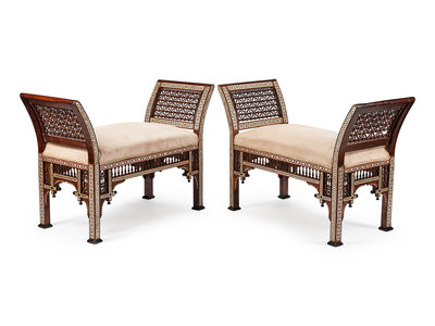 A Pair of Moorish Style Mother-of-Pearl Inlaid Benches
