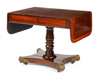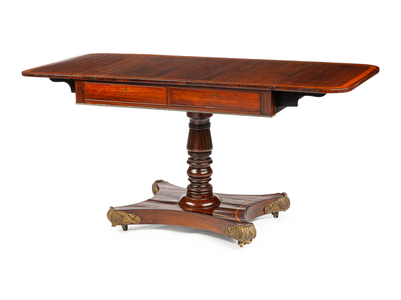 A Regency Gilt Bronze Mounted Rosewood and Satinwood Inlaid Sofa Table