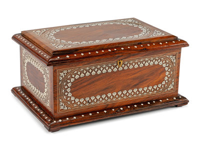 An Anglo-Colonial Bone Inlaid Mahogany or Rosewood Box