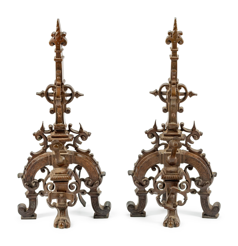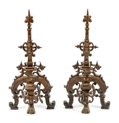 A Pair of English Rococo Style Patinated Bronze Chenets