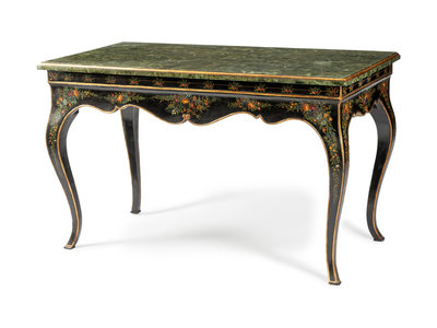 An Edwardian Style Painted and Parcel Gilt Center Table