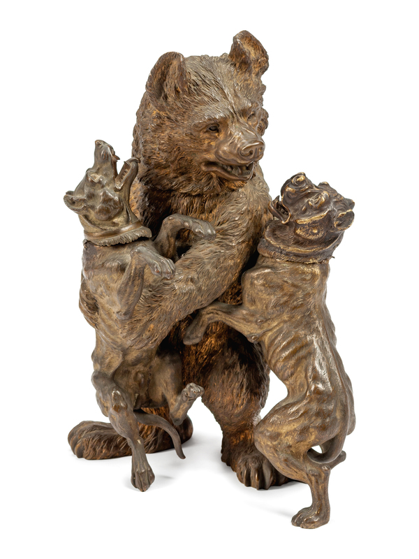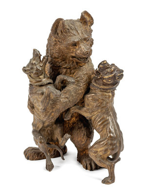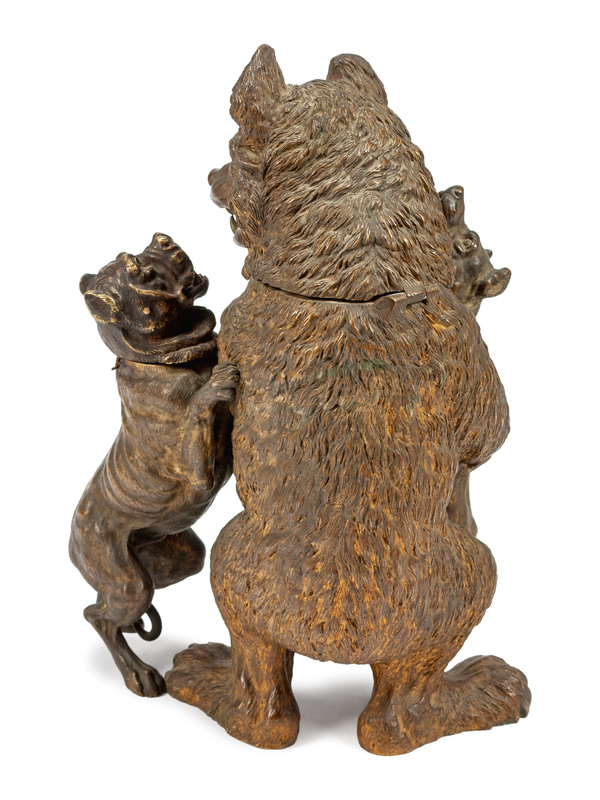 modeled to show two dogs and a bear, each head hinged at the neck.