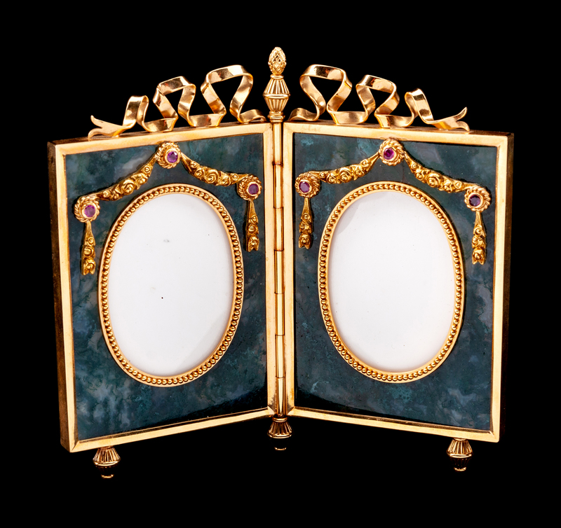 A Continental 18-Karat Gold, Ruby and Hardstone Mounted Double Picture Frame