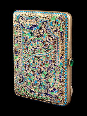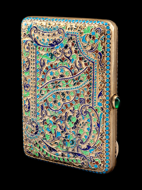 A Russian Enameled Silver-Gilt Cigarette Case