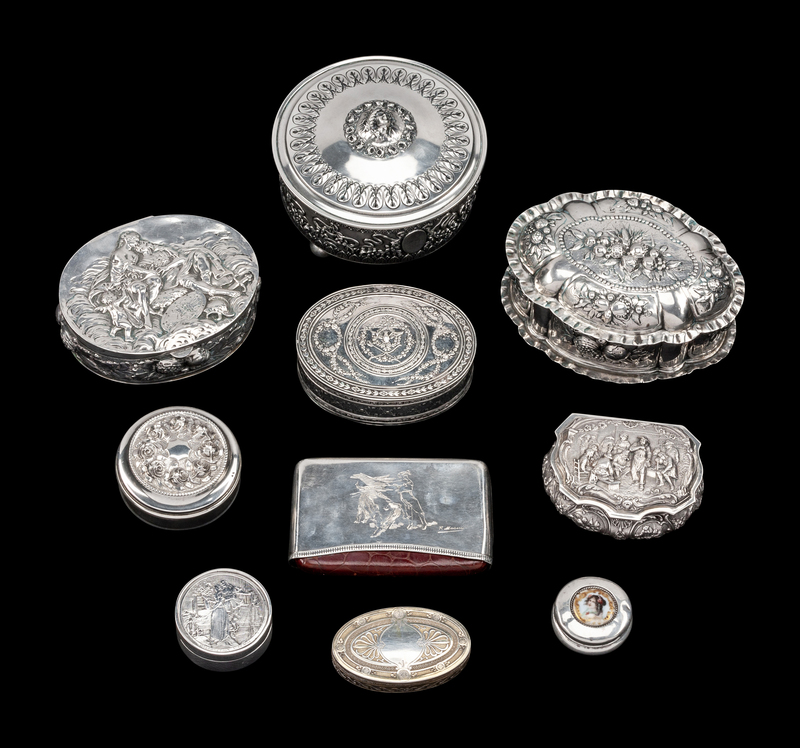 A Collection of Ten Continental Silver Boxes