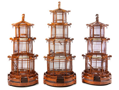 Three Large Chinese Bamboo Bird Cages