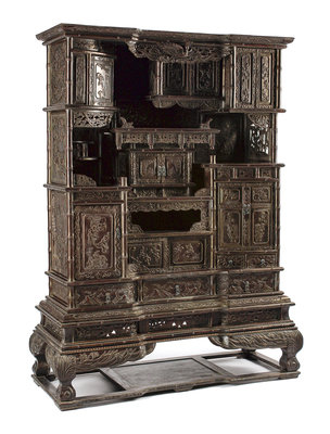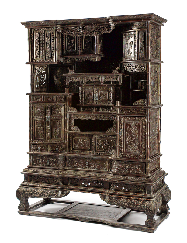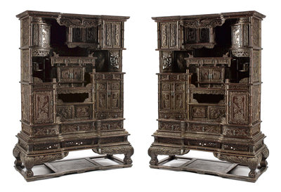 A Pair of Chinese Export Hardwood Whatnot Cabinets